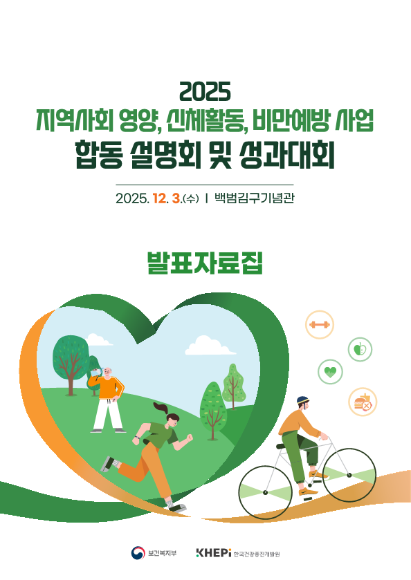 「2025년 지역사회 영양, 신체활동, 비만예방 사업 합동 설명회」 자료집을 공유하오니, 업무에 참고바랍니다.